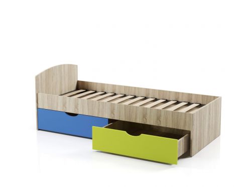Кровать Малютка (ЛДСП) с 2-ящиками. Размеры: 800×2000; 900×2000; 1200×2000; 1400×2000; 1600×2000. Настил: латофлекс, возможен щит из ЛДСП. Цвет ЛДСП: 1-категория: Белый. 2-категория: Кадена дарк, Кадена вуд, Тира, Графит, Дуб вотан, Дуб серый, Велюр, Ясень камелия, Шалфей. г. Пермь, ул. Г. Хасана, 109, ТЦ Баумолл, 2 этаж, Мебельный салон ЛИМОН