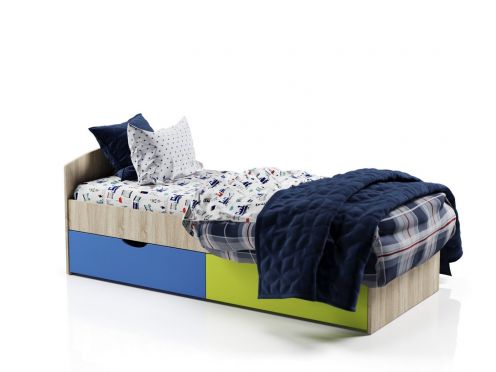 Кровать София (ЛДСП) с 2-ящиками. По стандарту левый угол. Размеры: 800×2000; 900×2000; 1200×2000; 1400×2000; 1600×2000. Настил: латофлекс, возможен щит из ЛДСП. Доп. опции: ◽️Бортик ЛДСП съемный 900×300. Цвет ЛДСП: 1-категория: Белый. 2-категория: Кадена дарк, Кадена вуд, Тира, Графит, Дуб вотан, Дуб серый, Велюр, Ясень камелия, Шалфей. г. Пермь, ул. Г. Хасана, 109, ТЦ Баумолл, 2 этаж, Мебельный салон ЛИМОН