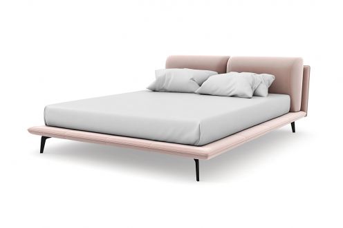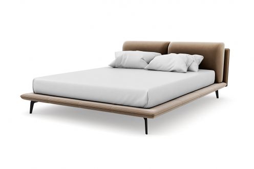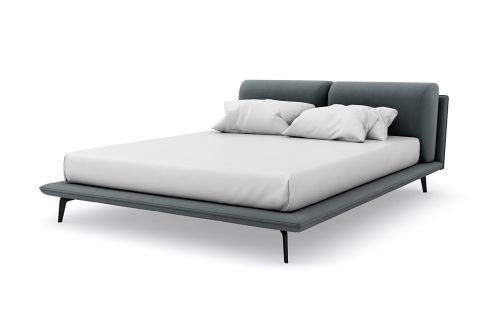 Спинка кровати выполнена в основной ткани, благодаря этому ее можно установить в центре комнаты , узкие царги и стильные металлические ножки делают кровать легкой и лаконичной.